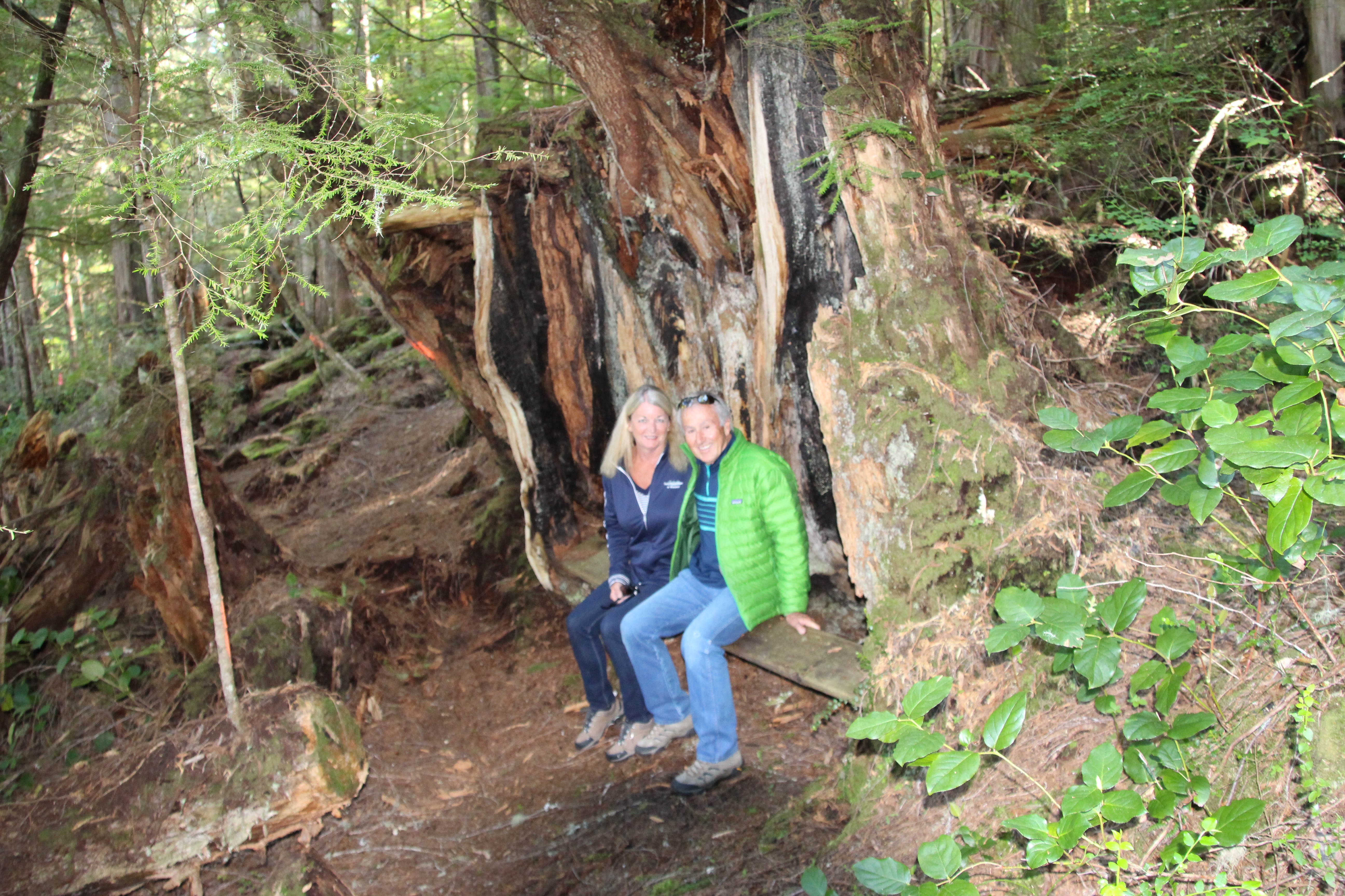 We reached Teakerne Arm and it is just that a very deep arm of a cove with a beautiful waterfall at the end. Now this separated the boys from the men trying to anchor in 200 feet plus water right up to the shore which is shear rock wall and then stern tying! Cabernet is equipped with forward seeing sonar and we were able to find a shelf that went from 175 ft. then to 125 ft. and then to 41 ft right up to the shore. Now remember we have a 16 foot tide and it was out. So we let down our anchor and hooked the second shelf, we let out 225 feet of anchor chain and backed up to within 20 yards from shore. How did I know? I used my laser that I use to find yardage on the golf course. Ha Ha! Took a rope ashore and around a tree and back to the boat. Done. In place for the night. We had another boat with us that the folks have never anchored so the we invited them to raft up to us and we all were secure for the night. Took a hike up to a lake at the back of the waterfall where they use to cut trees and run them down the waterfall. There was an old rusted “donkey” at the top of the water fall. The logging operating in the 1920’s used this donkey to pull logs from the lake to the waterfall and then the log floated down to the water below where they could raft them together and take them to a mill. This must have been ruff place in the 20’s. Feels now like there is no-one withing hundreds of miles.